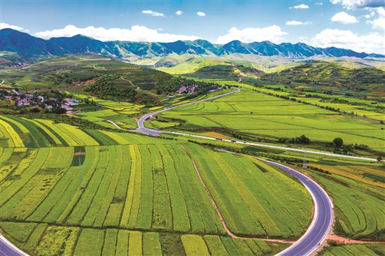 在這里,山水皆靈,無論是層巒疊嶂、云開日出,還是淳樸民俗、紅色傳奇,皆是亮眼的風景;在這里,阡陌相通,無論是紅黑枸杞、五谷雜糧,還是葡萄美酒、蘋果梨花,正成搶手的生意。路網(wǎng)暢通處,熙熙攘攘,日益高效的城鄉(xiāng)人流物流,促進了農(nóng)業(yè)產(chǎn)業(yè)轉(zhuǎn)型升級,也讓美麗鄉(xiāng)村宜居宜業(yè)煥發(fā)生機……六盤山,曾經(jīng)記錄下歷史轉(zhuǎn)折的奇跡,而今正見證一個擺脫貧困的新時代。